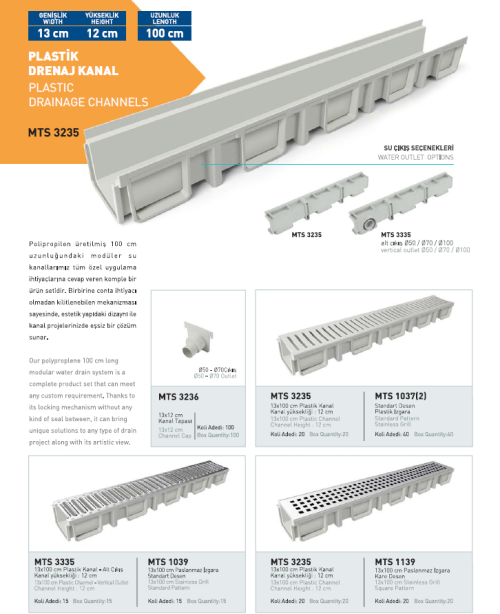 13 cm Genişlik 12 cm Derinlik 100 cm Uzunluk